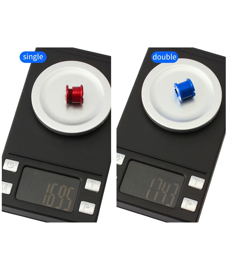 Однодисковый гвоздь Двухдисковый гвоздь Цвет: черный, красный, синий, золотой Вес: один диск для ногтей, один 1,6 г, двойной диск для ногтей, один 1,7 г Материал: 7075 алюминиевый сплав Комплектация: винт * 5