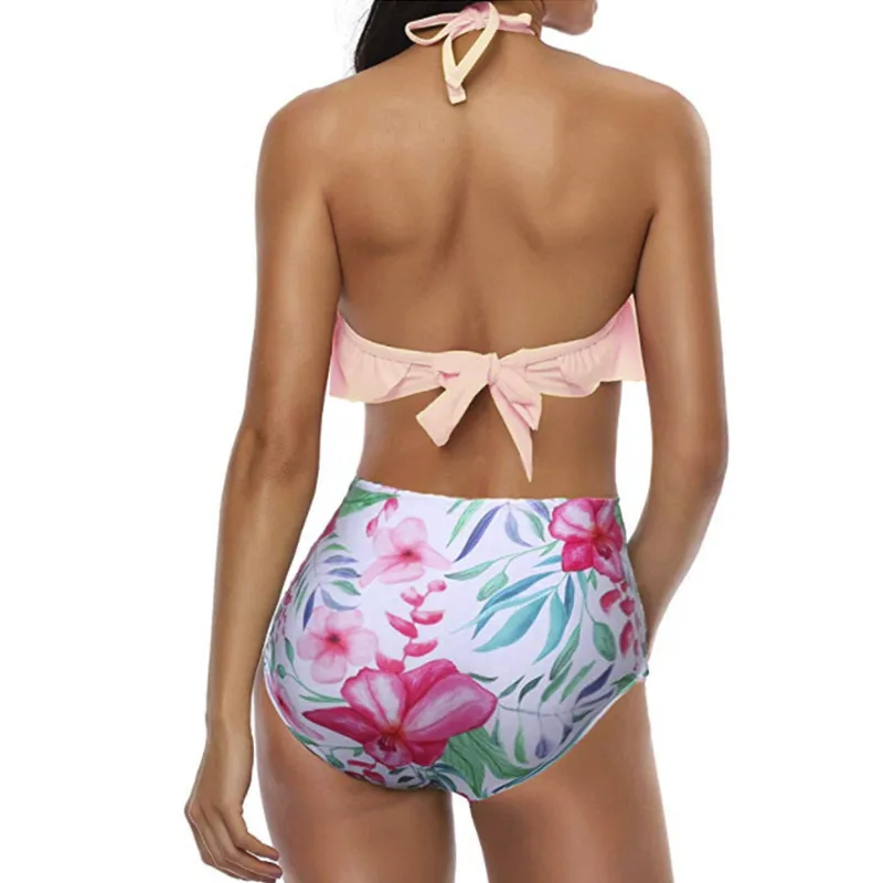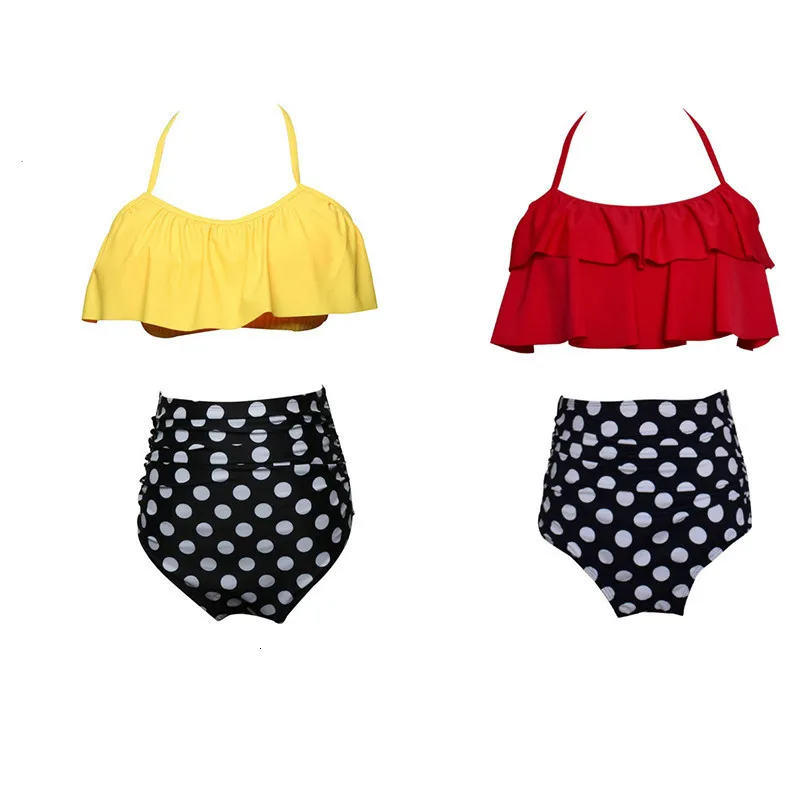 Женский Ретро Волан Высокая талия бикини с завязкой на шее из двух частей купальник горячая распродажа купальный костюм в горошек с окантовкой XL купальники Pad Biquini