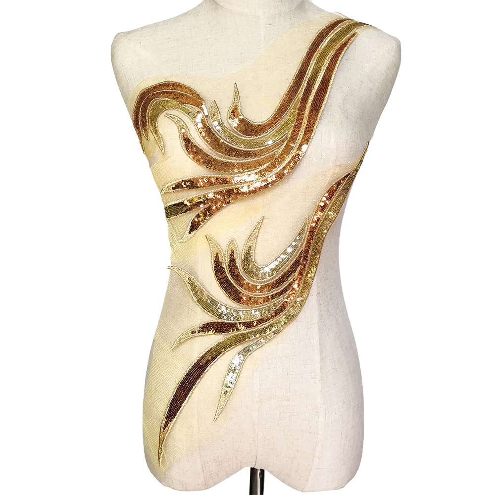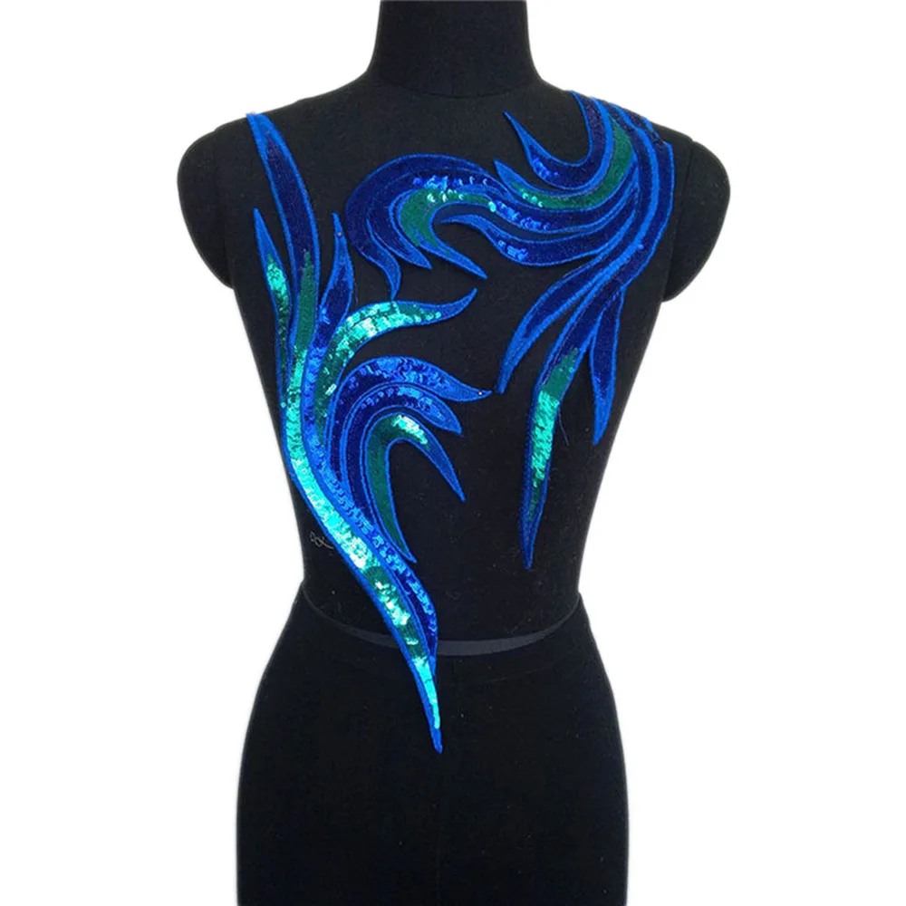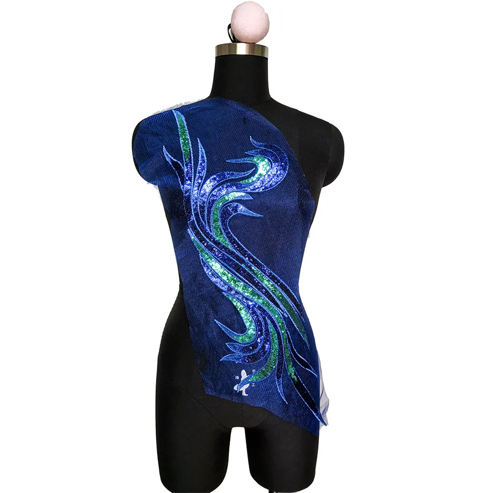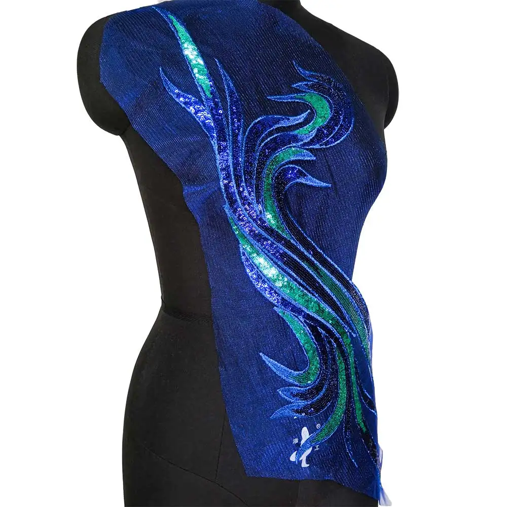 Золотисто-синяя вышивка с пайетками, вышивка, Одежда для танцев, выпускного вечера, декоративные аксессуары