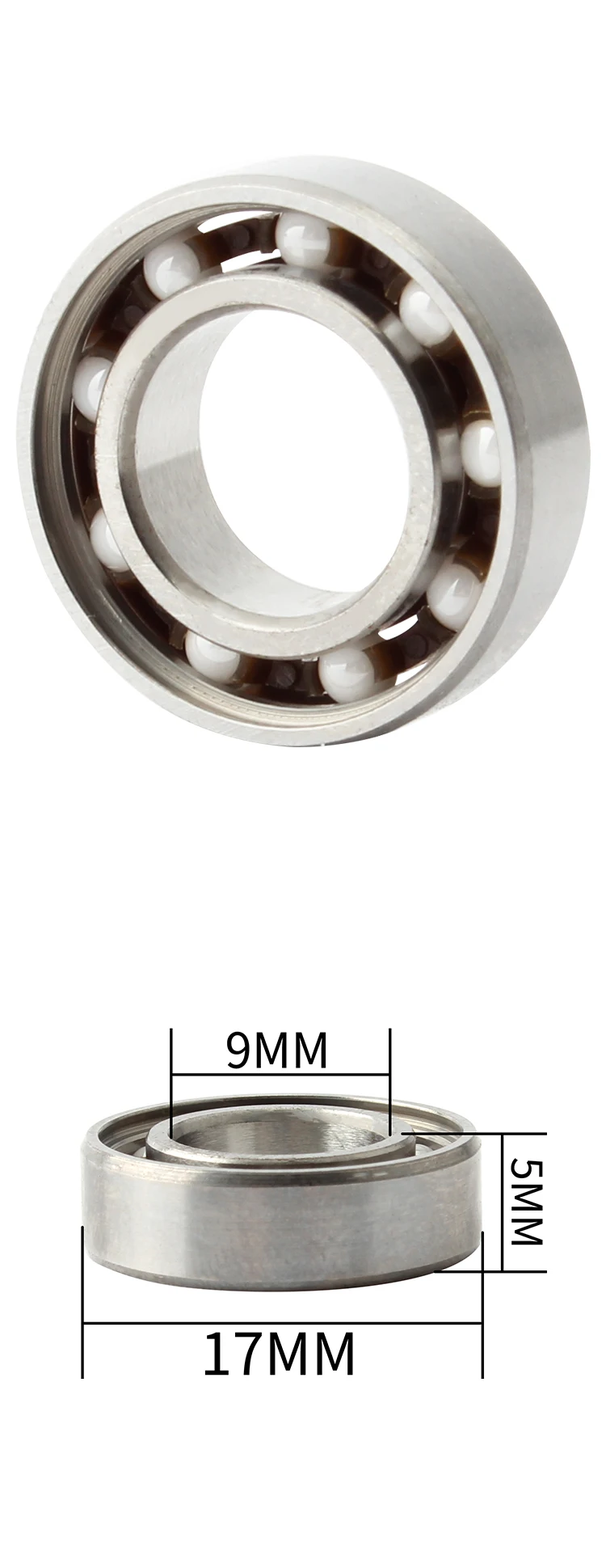 Материал: подшипниковая сталь + керамический шар Характеристики размера: 9*17*5 мм Вес: 3,3 грамм
