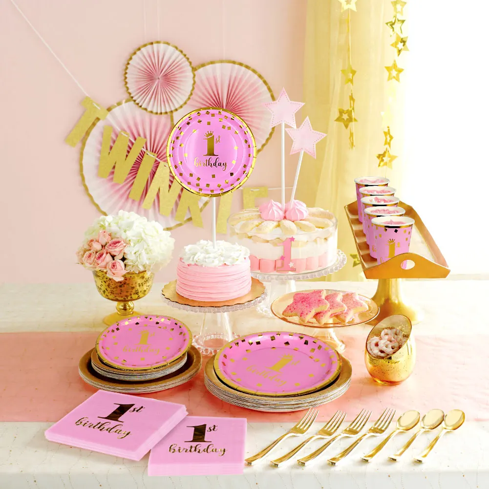 OurWarm день рождения партии одноразовая посуда бумажные стаканчики тарелка салфетки подарок для гостей девушки розовый день рождения партии сувениры украшения