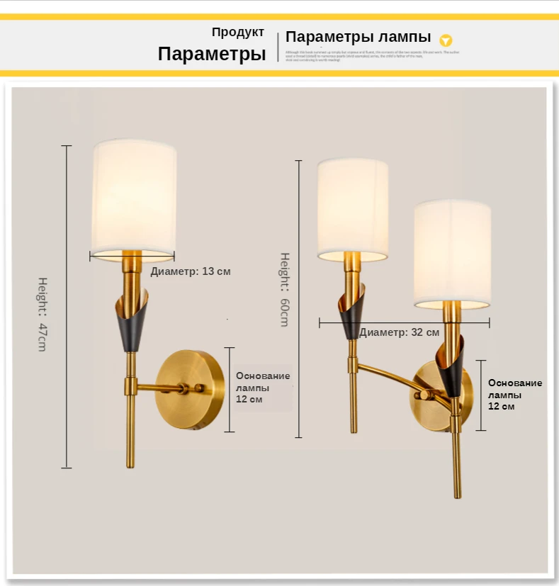 Модель: E14 1/2 головки настенный светильник Размеры: 1 головка: Диаметр: 13 см (5,12 дюйма) Высота: 47 см (18,5 дюйма) 2) головок: Диаметр: 32 см (12,6 дюйма) Высота: 60 см (23,62 дюйма) Абажур Материал: ткань Основной материал: железо Держатель лампы: E14 Источник света: в комплекте (E14 Светодиодный светильник * 1)