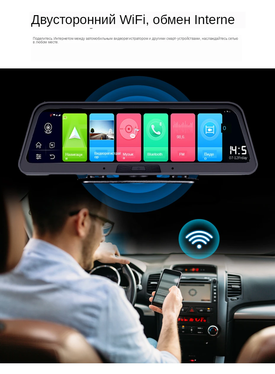 Встроенный Wi-Fi позволяет оставаться на связи на ходу и быстро просматривать веб-сайты. GPS карта, фильмы, музыка и приложения могут быть предварительно загружены, когда доступен бесплатный WiFi. Не только Автомобильный видеорегистратор подключается к Wi-Fi, но и может быть точкой Wi-Fi для вашего другого устройства, когда Автомобильный видеорегистратор поставляется с интернетом на 2G/3G/4G sim-карты.