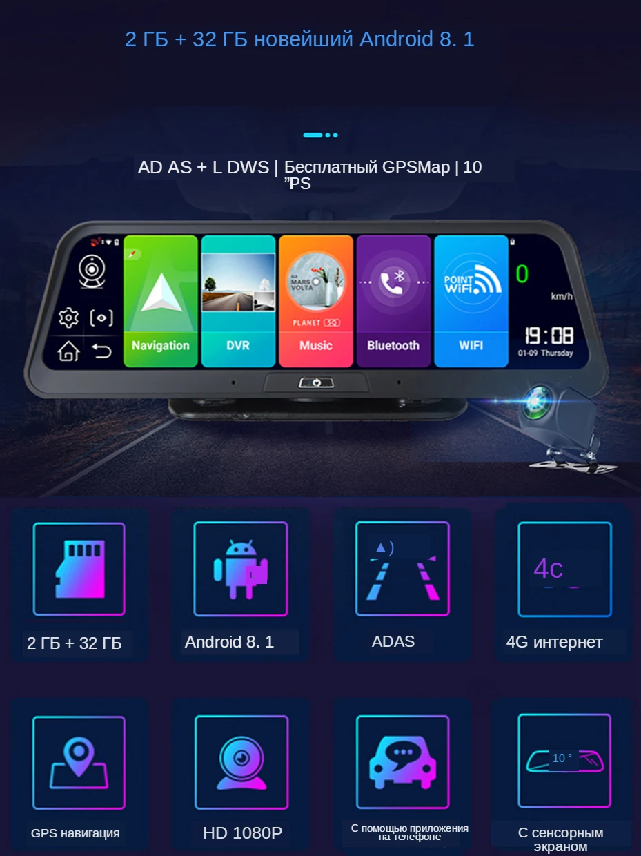 Четырехъядерный высокопроизводительный процессор 1,4 ГГц включает смарт-системы Android 8,1. Это делает Автомобильный видеорегистратор более быстрым. Вы можете скачать любое приложение из магазина google play.