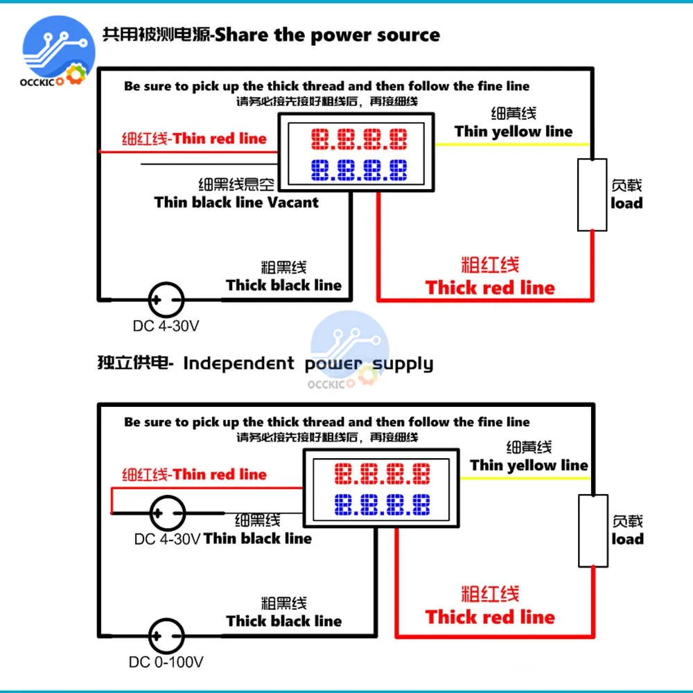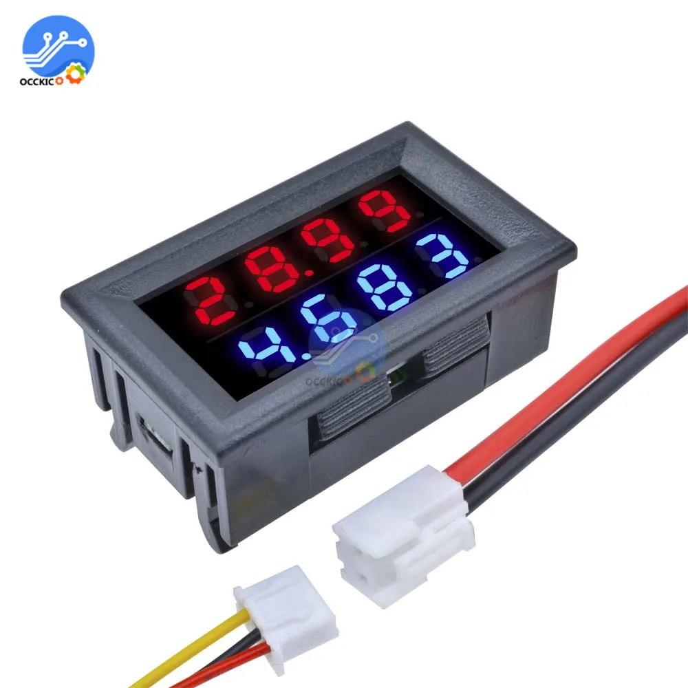Высокая точность, четыре цифровых дисплея Рабочее напряжение: 4-28 В постоянного тока Рабочий ток:<20 мА Дисплей: 0,28 "два цвета: синий и красный Диапазон измерения: постоянный ток 0-200 в 0-10 А Встроенный шунт Частота обновления: около 1 с/3 раза Точность измерения: Рабочая температура: от-10 до 65 °C Рабочее давление: от 80 до 106 кПа Размер: 48 × 29 × 20 мм Ток: диапазон x 0.08% + две цифры Напряжение: диапазон x 0.08% + две цифры О проводка: Тонкая красная линия: источник питания + Красная линия (Толстая): IN +, ток на входе Желтая линия (Толстая):PW +, измерительный терминал входного напряжения Толщина черной линии: COM, общий измеритель Черная тонкая линия Товар включает в себя: 1x цифровой вольтметр Амперметр постоянного тока 100V 10A Напряжение измеритель величины тока Питание красные, синие светодиодный двойной Дисплей