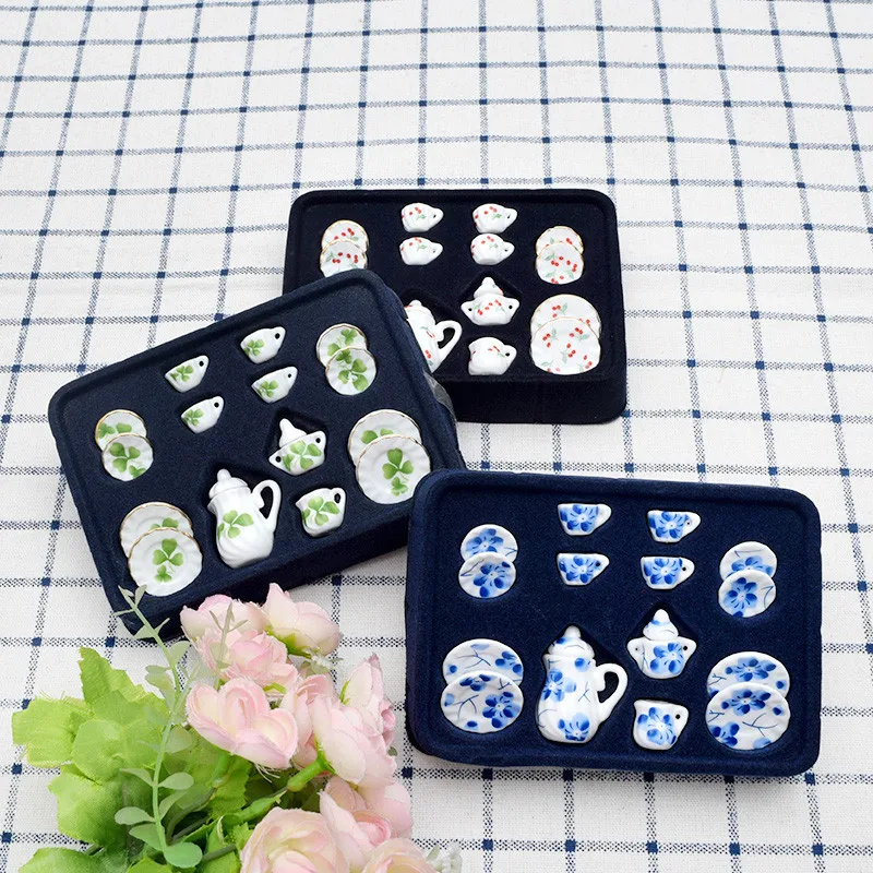 Миниатюрный фарфоровый набор из 15 штук, 12 узоров, 1:12
