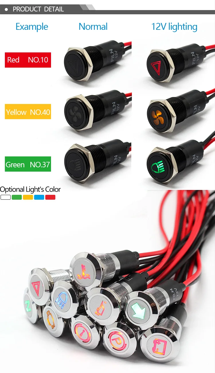 12 мм водонепроницаемая лампа FILN 12V светодиодный автомобильный лодочный Предупреждение ющий сигнал на приборной панели светильник s инструмент пилот светильник черный хром