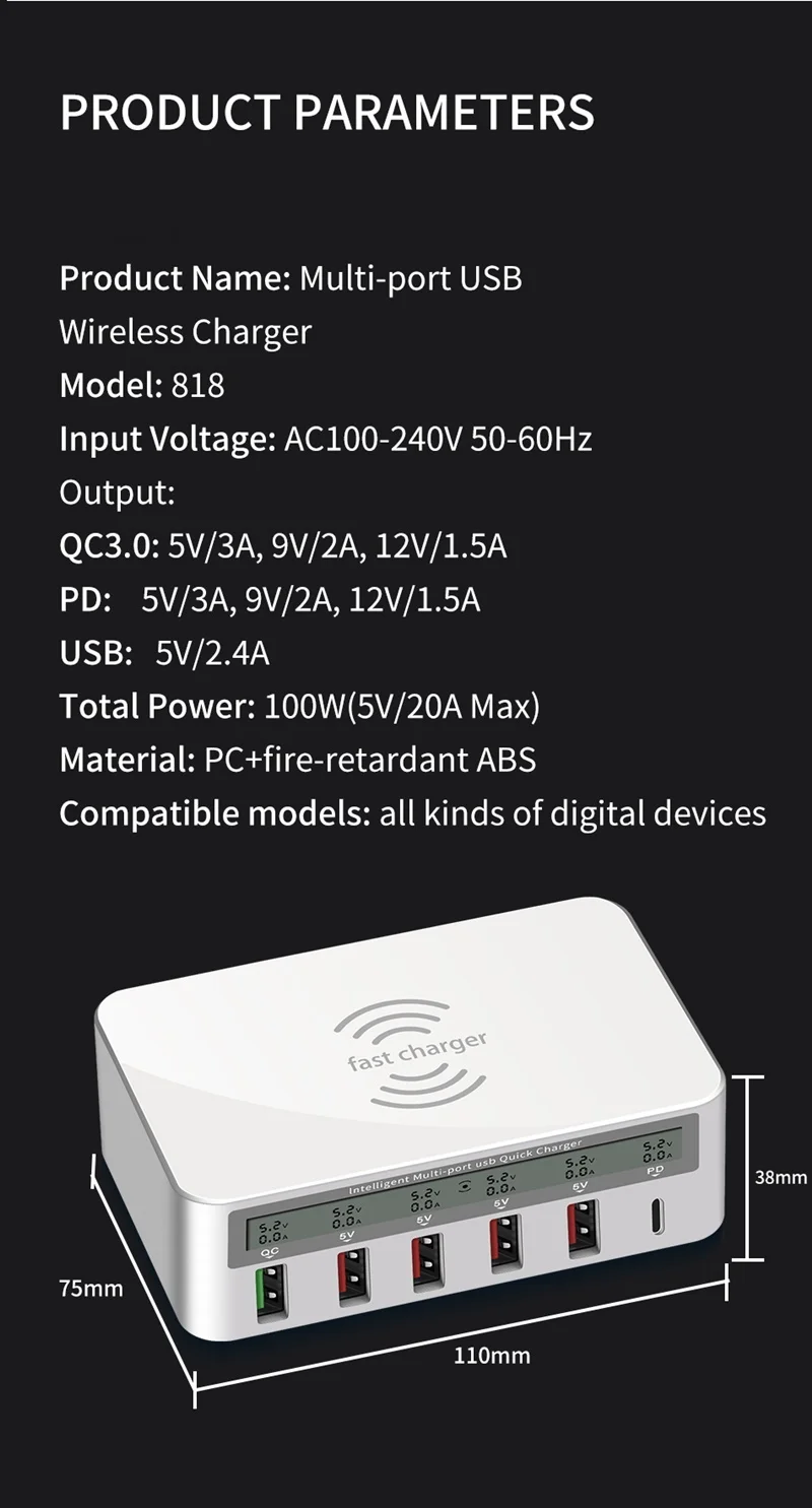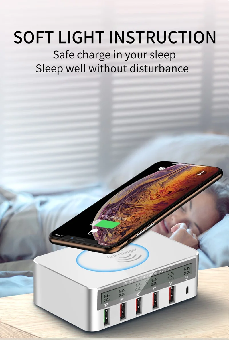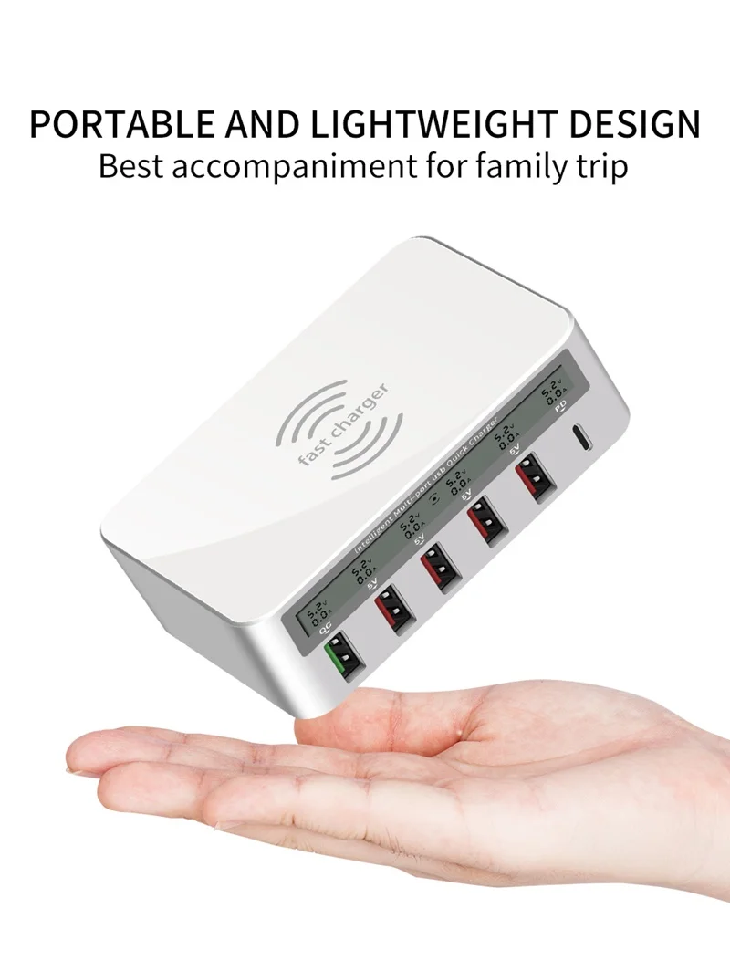 Tongdaytech 100 Вт Мульти USB быстрое PD зарядное устройство Быстрая зарядка QC 3,0 ЖК-дисплей Qi Беспроводное зарядное устройство для Iphone 8 Plus XS X 11 Pro Max