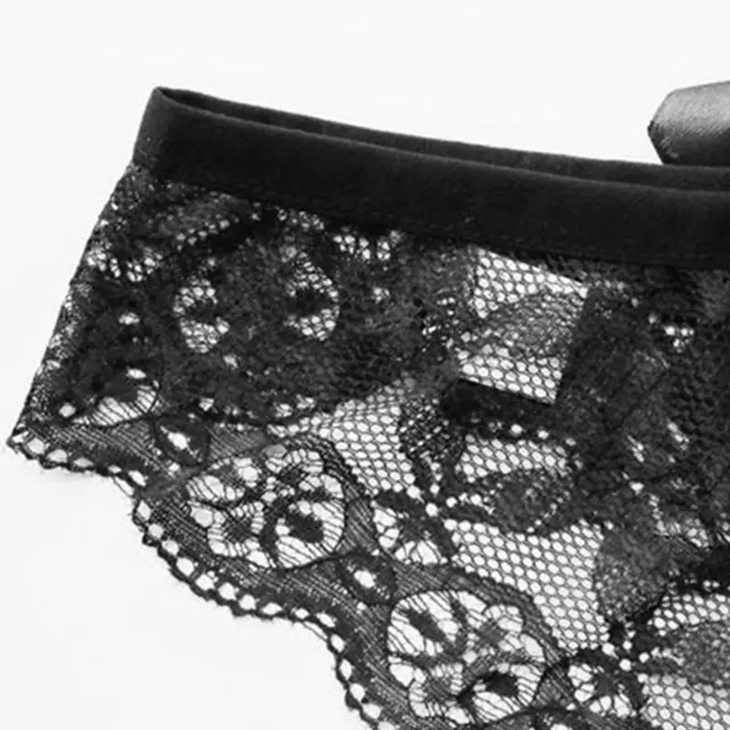 Женское соблазнительное прозрачное кружевное нижнее белье с цветочным принтом, с низкой талией и большим бантом, однотонные стринги с Т-образным ремешком, M-3XL