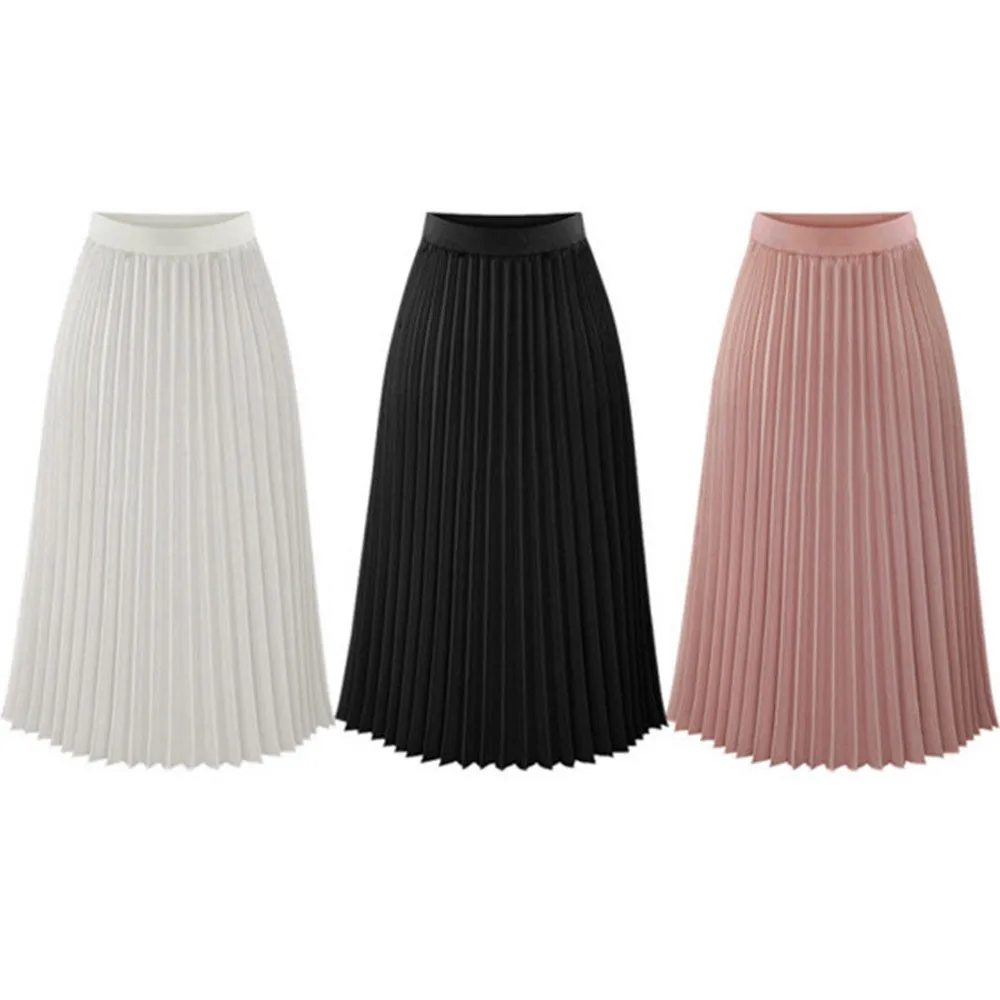 Женская мягкая и удобная однотонная плиссированная элегантная миди-юбка макси с эластичной талией, L50/0110
