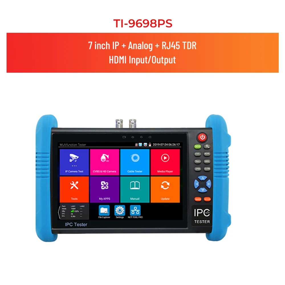 TI-9698PS MOVTADHS:8 МПIP + аналог +AHD + CVI + TVI + SDI+ HDMIВход/Выход+Кабельный трассировщик +Мультиметр + оптический измеритель мощности + красный светильник + TDR + тест уровня видеосигнала