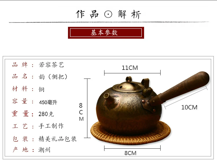 Yi 0,75 литров ручной работы античный медный чайник