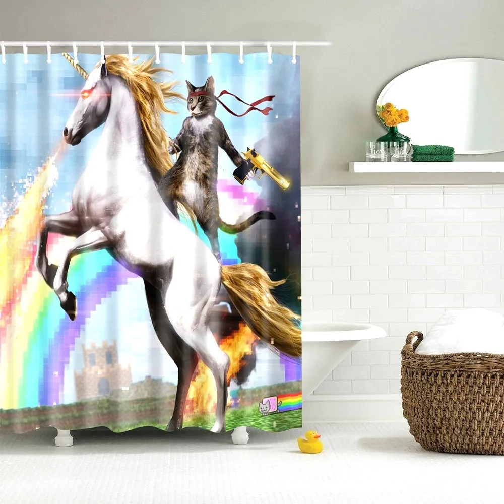 Занавеска для душа Dafield Cat забавная чистка зубов Толстая кошка из 100% полиэфирной ткани машинная стирка Водонепроницаемая прочная