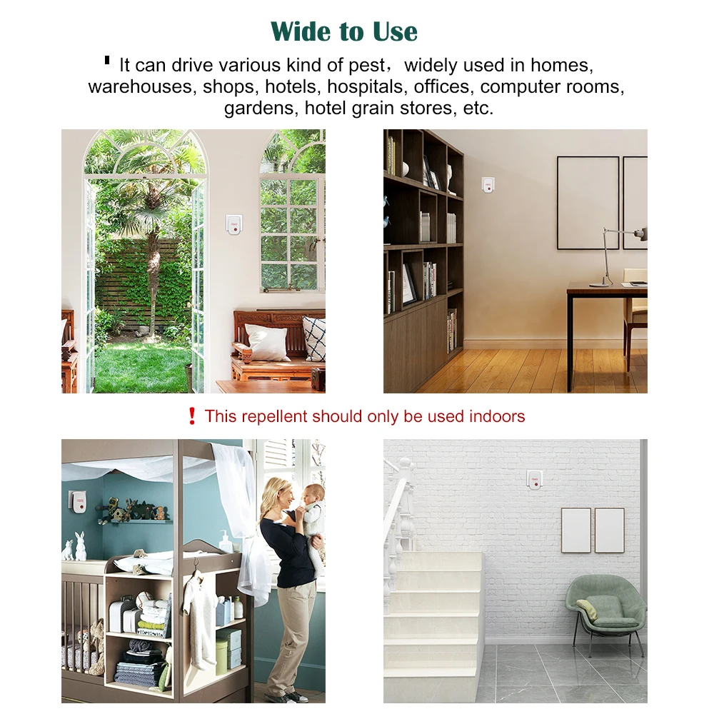 Особенности: Высокотехнологичный электронный продукт Электронный отпугиватель насекомых-это новый тип высокотехнологичного электронного продукта, который использует высокочастотную ультразвуковую схему развертки для создания потрясающих ультразвуковых волн 20 ~ 55 кГц. Научные исследования показали, что комары, тараканы, мыши, клещи и другие вредители в диапазоне звуковых волн этой частоты, их эндокринная система и физиологические функции будут производить флокуляции, таким образом, играя роль вождения, ультразвук не влияет на человеческий организм и других животных, вредных, Потому что звуковые волны более 20 кГц не могут быть услышаны. Ультразвуковая волна Ультразвуковая волна с переменной частотой и другие технологии были использованы для удаления различных вредителей в пределах сферы действия. Микрокомпьютерные чипы и электронные интегральные схемы используются. Маленький и изысканный внешний вид, прост в использовании. Высокое качество Ультранизкочастотная Электромагнитная волна, излучаемая этим продуктом, может эффективно проникать в стену, и она не уменьшит эффект использования из-за блокирования объектов. Стабильная производительность, сильная функция, быстрый эффект. Безопасность и безвредный Ультранизкочастотная Электромагнитная волна, излучаемая этим продуктом, предназначена только для внутренних вредителей. Она не вызовет каких-либо отрицательных эффектов на человеческом теле, бытовой технике и домашних животных, поднятых семьями. Безопасный, нетоксичный, безвкусный и эффективный, и широко используется. Шириной до Применение Широко используется в домах, складах, магазинах, гостиницах, больницах, офисах, компьютерных комнатах, садах, гостиничных зерновых магазинах и т. д. Параметры Тип: ультразвуковой убийца комаров Материал: АБС-пластик Цвет: белый + черный Количество: купальное полотенце, 1 шт Вход напряжение: AC85-260V Номинальная мощность: 5-6 (Вт) Эффективный диапазон: 100 кв. М Тип вилки: штепсельная вилка США/ЕС Товар Размеры: 9,5*5*3 см/3,7*2*1,2 "(L * W * H) Вес нетто: 67,5 г/2,38 унций Посылка: 1 * ультразвуковой убийца комаров