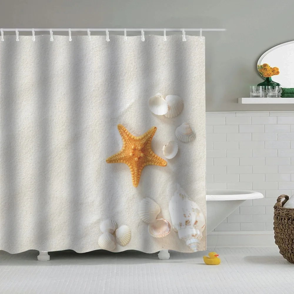 Dafield занавески для ванной, морской пляж, тропические Гавайские ракушки, морские звезды, песок, тема, художественный принт, ткань