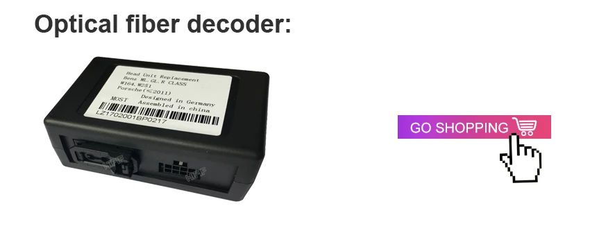 Пожалуйста, подтвердите, что ваш автомобиль имеет оригинальный волоконный усилитель! Например, у вашей автомобильной аудиосистемы есть BOSEХарман/Кардон,Логотип! Если это так, вам нужно купить дополнительную коробку волокна вместе, в противном случае оборудование, которое ваш усилитель волокна не может работать!Если у вас нет усилителя оптического волокна, вам не нужно покупать аксессуары!Оптоволоконный Декодер: