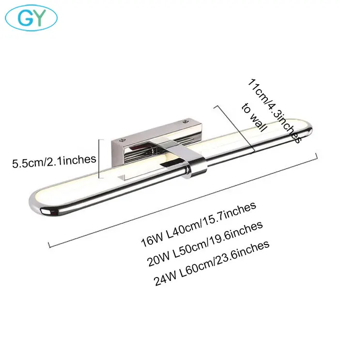 Материалы: нержавеющая сталь, акрил Вход напряжение: AC 110-240V 50/60Hz Светильник источник света: светодиодный Светодиодный индикатор включает или не включает: Мощность Потребляемая мощность: 16/20/24 Вт Цветовая температура: 4000-4300K для нейтрального белого цвета Режим управления: настенный выключатель Площадь освещения: 10 м ^ 2 до 20 м ^ 2