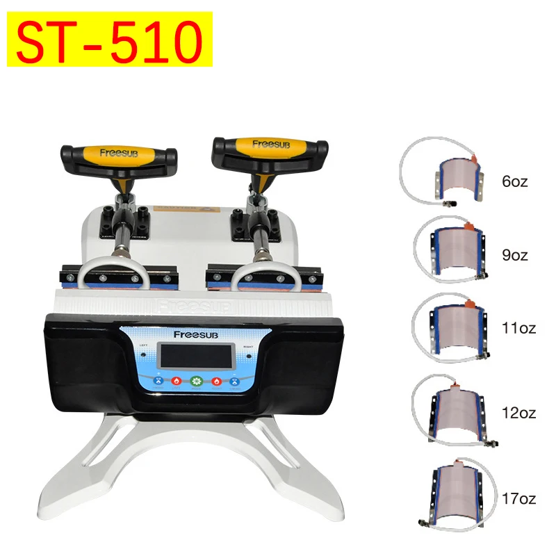 Номер товара:ST-510Размер переводной кружки:6 унций/9 унций/11 унций/12 унций/17 унцийМощность машины:280 Вт + 280 ВтНапряжение:220V/110VВес нетто:5,8 КгРежим управления:Светодиодный экранЦвет машины:Серебристый, черныйПараметр передачи:180 ℃,90 секПресс для кружки:Ручной пресс