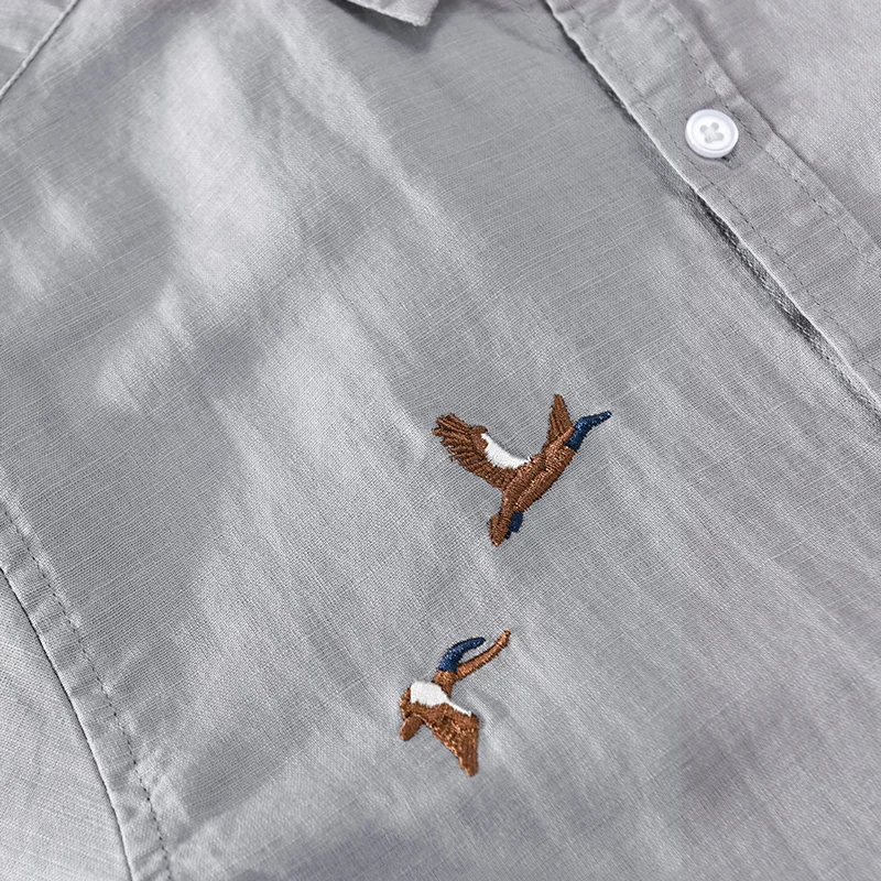 Новая дизайнерская льняная брендовая рубашка с вышивкой, мужская повседневная серая рубашка с длинным рукавом, модные удобные рубашки для мужчин, верхняя одежда, Camisas De Hombre Chemise Camisa Masculina