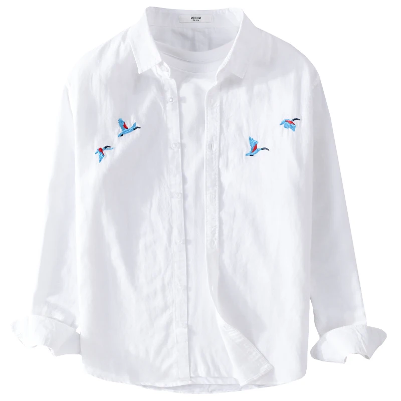 Новая дизайнерская льняная брендовая мужская рубашка с вышивкой, повседневные серые Модные Топы с длинным рукавом, верхняя одежда, Camisa Masculina