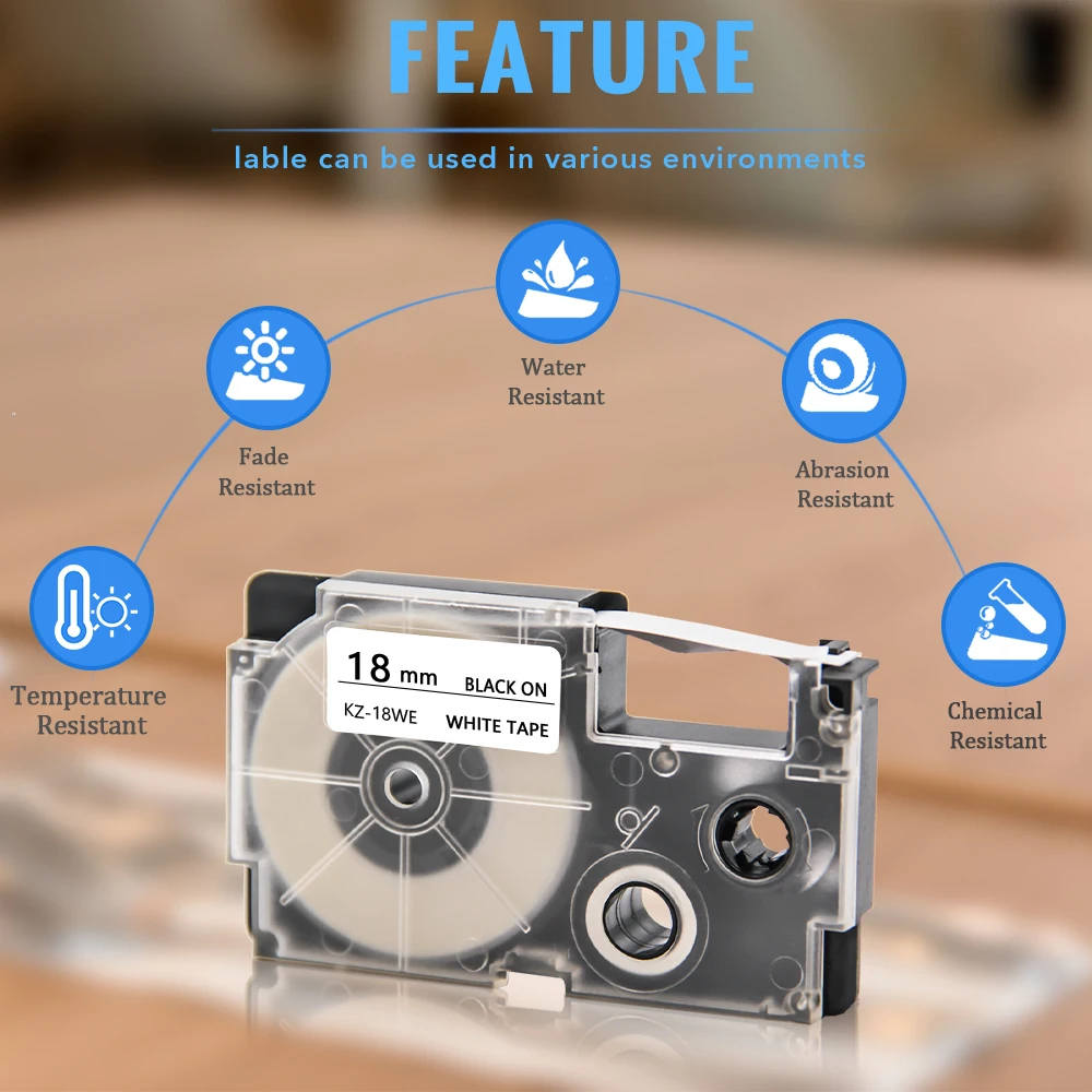 Информация о продукте: Тип: XR-18WE Цвет: черный на белом Размер: 18 мм * 8 м Характеристики: PV-Resustant, водостойкий, устойчивый к истиранию, устойчивый к коррозии, термостойкость, выцветание, химическая стойкость, сильная вязкость, легкая разделенная подложка, легко очищается. Посылка: 2PK