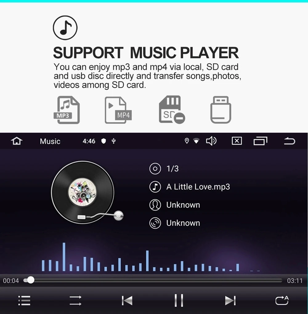 -Поддержка мультимедийного плеера Android, он может воспроизводить музыку/Фильмы/фото с локального диска или подключенной tf-карты.