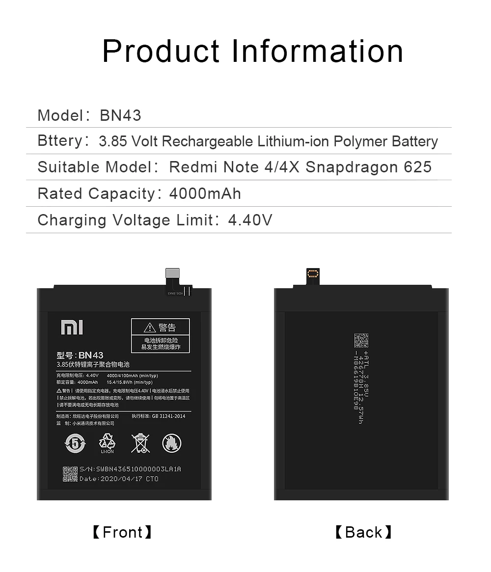 Xiao Mi Phone Battery BN43 для Xiaomi Redmi Note 4X / Note 4 Global Snapdragon 625 сменная батарея 4000 мАч с бесплатными инструментами
