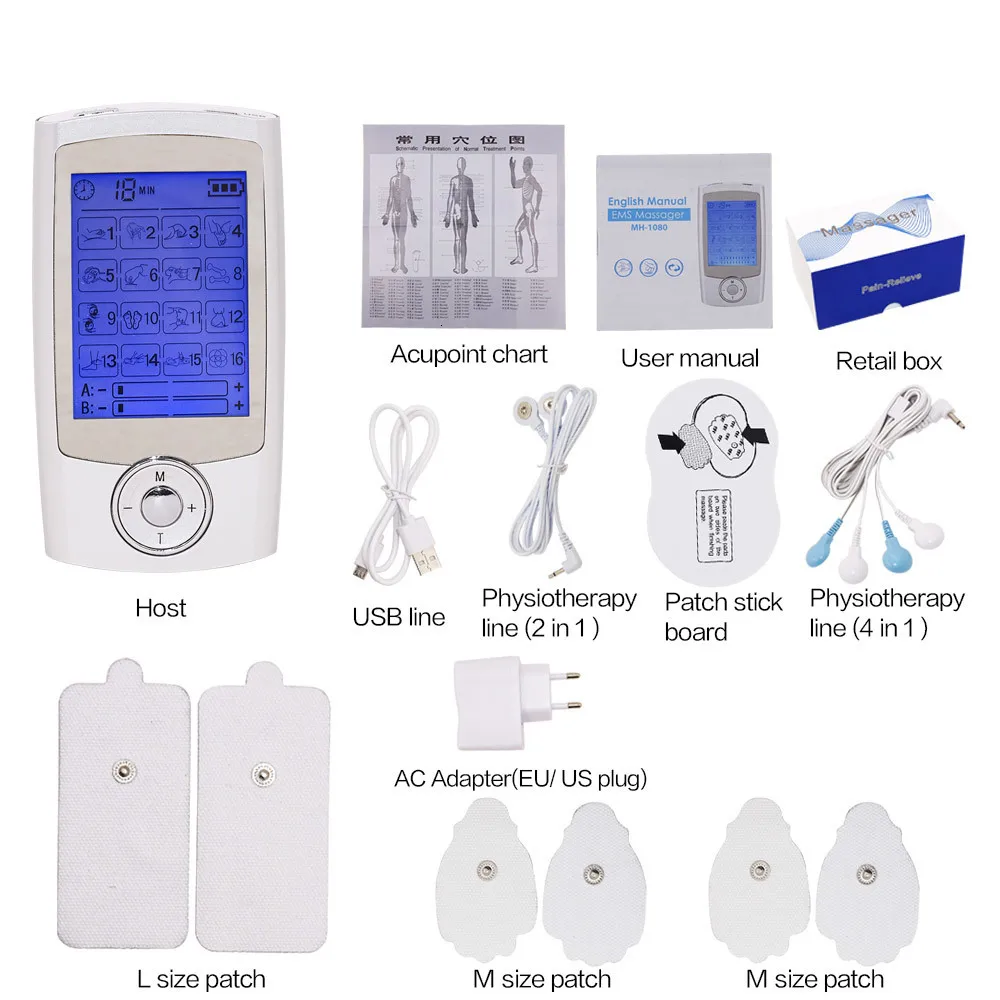 EMS массажер Перезаряжаемые электрическая машина для облегчения боли 16 режимов десятки подразделение Портативный Пульс двойной Выход мышцы стимулятор терапия