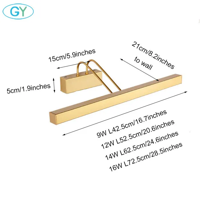 Современный светодиодный светильник для зеркала 9 Вт 12 Вт 14 Вт 16 Вт светодиодный настенный светильник для ванной комнаты промышленный настенный светильник золотой туалетный светильник водонепроницаемый wandlamp