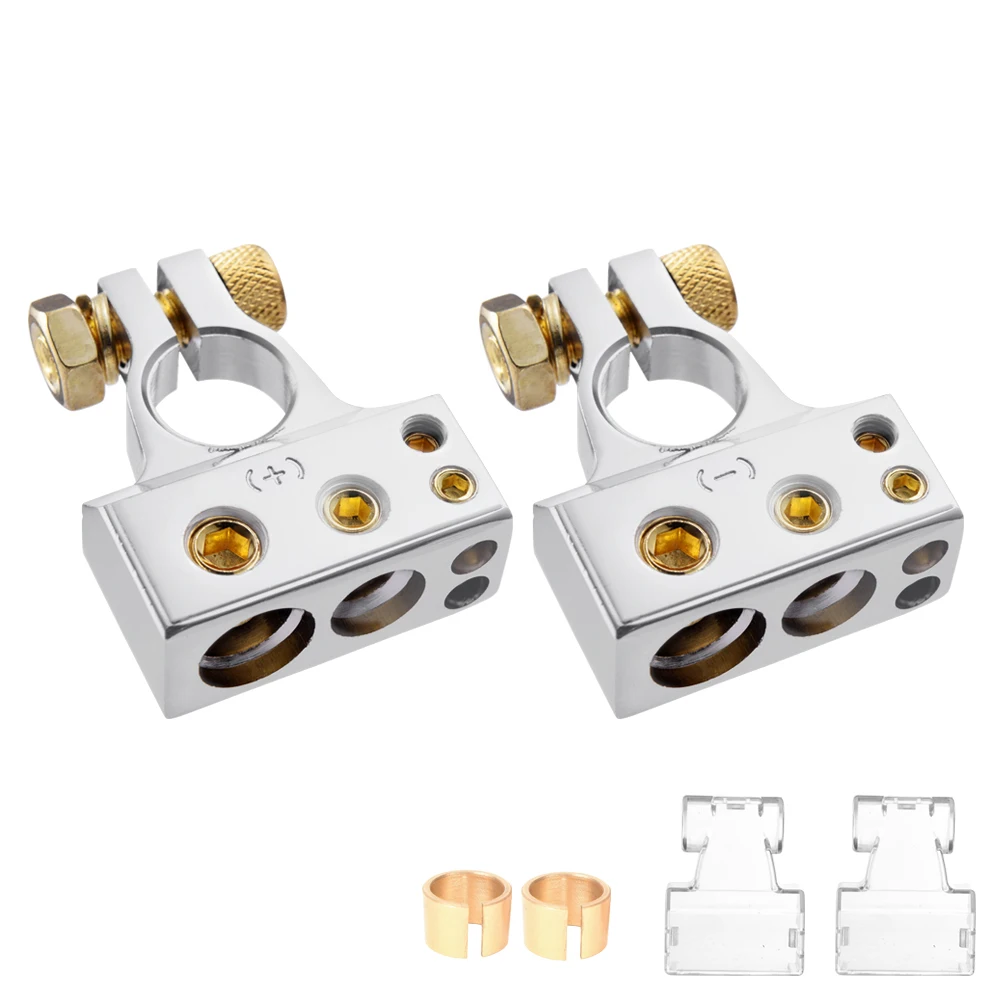 3. Положительная отрицательная Клемма-Положительная (19 мм) Клемма аккумулятора + отрицательная (17 мм) Клемма аккумулятора. 2 медные разделительные прокладки, предоставленные в чехол, посты не достаточно большие, а также медный материал более проводящий и гибкий