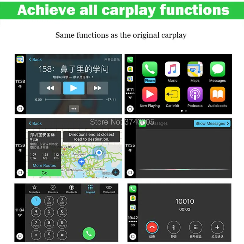 USB CarPlay dongel Конечной ПИЛОТ: Доступен на некоторых автомобилях, CarPlay-это более умный, безопасный способ использования вашего iPhone в автомобиле. CarPlay принимает то, что вы хотите сделать с вашим iPhone во время вождения, и кладет их прямо на встроенный дисплей вашего автомобиля. Вы можете получать указания, совершать звонки, отправлять и получать сообщения, а также слушать музыку, таким образом, чтобы вы могли оставаться сосредоточенными на дороге. Просто подключите ваш iPhone и перейдите. 2. Карты Пусть ваш iPhone покажет вам путь. Питание и простота Apple Maps доступны на приборной панели. CarPlay может предсказать, куда вы идете С помощью адресов электронной почты, текстовых сообщений, контактов и календарей. Вы можете найти вместе Ваш маршрут для следующих АЗС, ресторанов, кафе и многого другого. Или просто используйте свой голос: «Siri, где находится ближайшая зарядная станция EV?» И CarPlay не просто направляет Вы-это поможет вам безопасно получить там, посоветуя, в какой полосе нужно быть, чтобы сделать поворот, И показывает ограничение скорости. 3. Чехол для телефона Дорога звонит. Совершать звонки, возвращать пропущенные звонки и слушать голосовую почту. Siri может помочь вам сделать все эти вещи. Все, что вам нужно сделать, это спросить. 4. Сообщения Чтение и письмо сейчас прослушивают и диктуют. Siri может читать, отвечать и отправлять текстовые сообщения для вас, поэтому вам никогда не придется смотреть на свой iPhone во время вождения. Просто скажите "Сири, скажите Блэр, что я буду там через 20 минут", и все готово. CarPlay также может воспроизводить аудиосообщения через колонки автомобиля. 5. Музыка Всю вашу музыку. Красиво устроены. Используйте встроенные элементы управления вашего автомобиля, чтобы получить доступ ко всему своему контенту с помощью приложения для прослушивания музыки Apple и дополнительных аудиоприложений. Поиск по артисту, альбому или песне. Посмотрите, что играет и что дальше. Вы можете попросить Siri играть свою любимую песню с помощью Arcade Fire или выполнять функции личного диджеев. Состояние использования: Навигационный плеер: Система android 4,0 или выше Телефон: поддержка iPhone 5/5S/6/6P/6S/6S P/7/7P/8/X Подключитесь к iPhone: 1. Установите приложение на навигационный плеер. 2. Выберите приложение на экране. 3. Подключите usb-ключ к USB dvd-плееру, а затем подключите его к iPhone с помощью ключа. Совместимость со всеми автомобильными Радио android 4,4 выше через USB-соединение. Совместимость с IOS 10,0 выше iPhone и 6,0 выше телефона android. Загрузите приложение по адресу http:/121.40.123.198:8080/zbox/zbox.apk на свой компьютер, Стикер USB для установки APK на радио android. Откройте приложение и Подключите свой мобильный телефон.