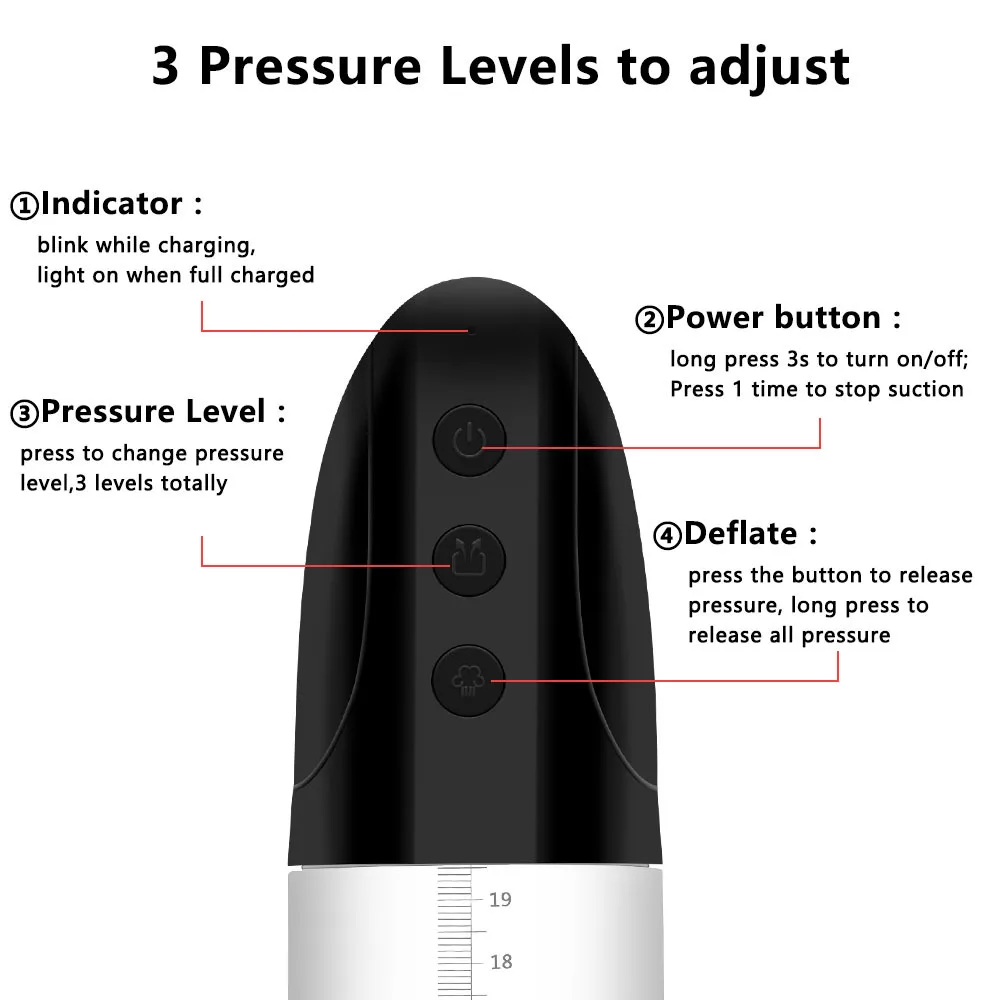 1. Сила всасывания помогает расслабить гладкие мышечные клетки, расширить кавернозное тело; 2. Нажмите, чтобы изменить давление, чтобы соответствовать большинству людей; 3. Нормальный дизайн, линия шкалы на поверхности, легко проверить изменение; 4. Кровь в артерии ускоряет скопление в кавернозном теле и затвердевает пенис; 5. Быстрая зарядка через USB, удобно заряжать; 6. Эластичный резиновый круг, может использоваться в качестве Кольца для пениса.