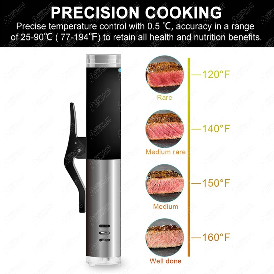 1: готовьте как шеф-повара дома: обеспечивает качество еды ресторана с легкостью, сохраняя соки, влагу и ароматы благодаря точному контролю температуры; сохраняет все преимущества для здоровья и питания, которые трудно достичь от традиционной кухни; Включает в себя легко следовать sous vide кулинарный рецепт книга, рекомендованная поварами 2: Точная плита и интеллектуальный дизайн: наша плита sous vide имеет широкий диапазон температур 77-194 °F (25-90 °C) В 0,1 °C точность и Макс Установка таймера-99 ч; Интуитивно понятный ЖК-дисплей сенсорное управление позволяет легко регулировки и слежения за ними на дальнем расстоянии 3: мощная, но Тихая плита: Эта высокоточная плита sous vide сохраняет однородную температуру до 20 л воды даже при полном выходе 1000 Вт; ультра-тихий с уровнем шума менее 40 дБ при 1 м 4: Простота в использовании и чистке: легко и надежно прикрепить его к любому контейнеру с помощью винтового зажима; Установите желаемую температуру и время нажатием кнопки; С уверенностью Оставьте его без присмотра, чтобы легко готовить со своим таймером и точными функциями контроля температуры; Легко чистите его влажной и мягкой тканью