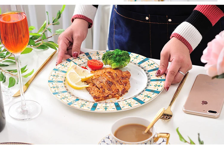 Европейский Простой стиль костяной фарфор тарелка с изысканным декоративным узором макароны стейк ужин тарелка