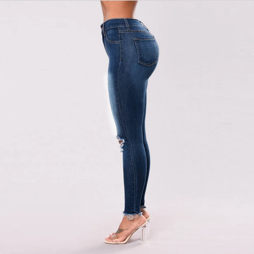 Модные женские джинсы, мягкие и удобные, с дырками, женские, со средней талией, стрейчевые, тонкие, сексуальные, узкие брюки L50/0130