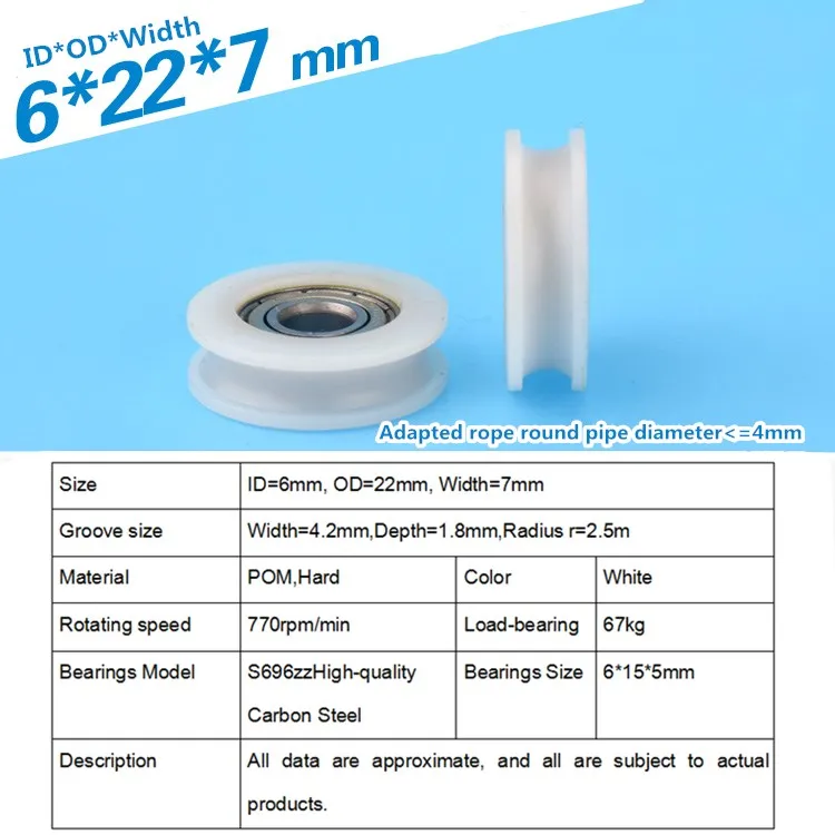[Размер ролика]:ID = 6 мм, OD = 22 мм, ширина = 7 мм