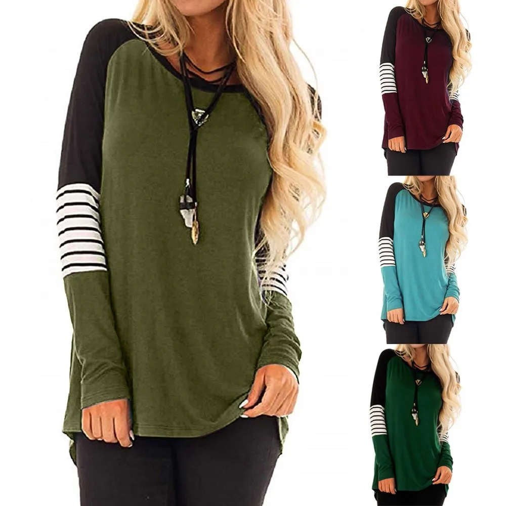 Женская Повседневная футболка в полоску, свободная блузка с длинным рукавом