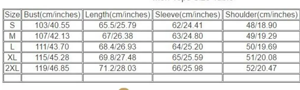 Таблица размеров мужских топов