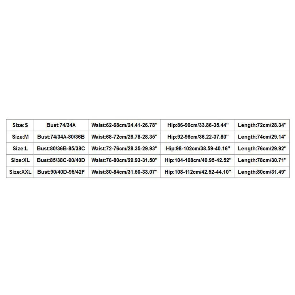 Размер Обхват груди Обхват талии Обхват бедер Длина S 74/34A 62-68 см/24,41-26,78" 86-90 см/33,86-35,44" 72 см/28,34" М 74/34A-80/36B 68-72 см/26,78-28,35" 92-96 см/36,22-37,80" 74 см/29,14" L Детская одежда на рост 80, 36B-85/38C 72-76 см/28,35-29,93" 98-102 см/38,59-40,16" 76 см/29,92" XL 85/38C-90/40D 76-80 см/29,93-31,50" 104-108 см/40,95-42,52" 78 см/30,71" XXL 90/40D-95/42F 80-84 см/31,50-33,07" 108-112 см/42,52-44,10" 80 см/31,49"