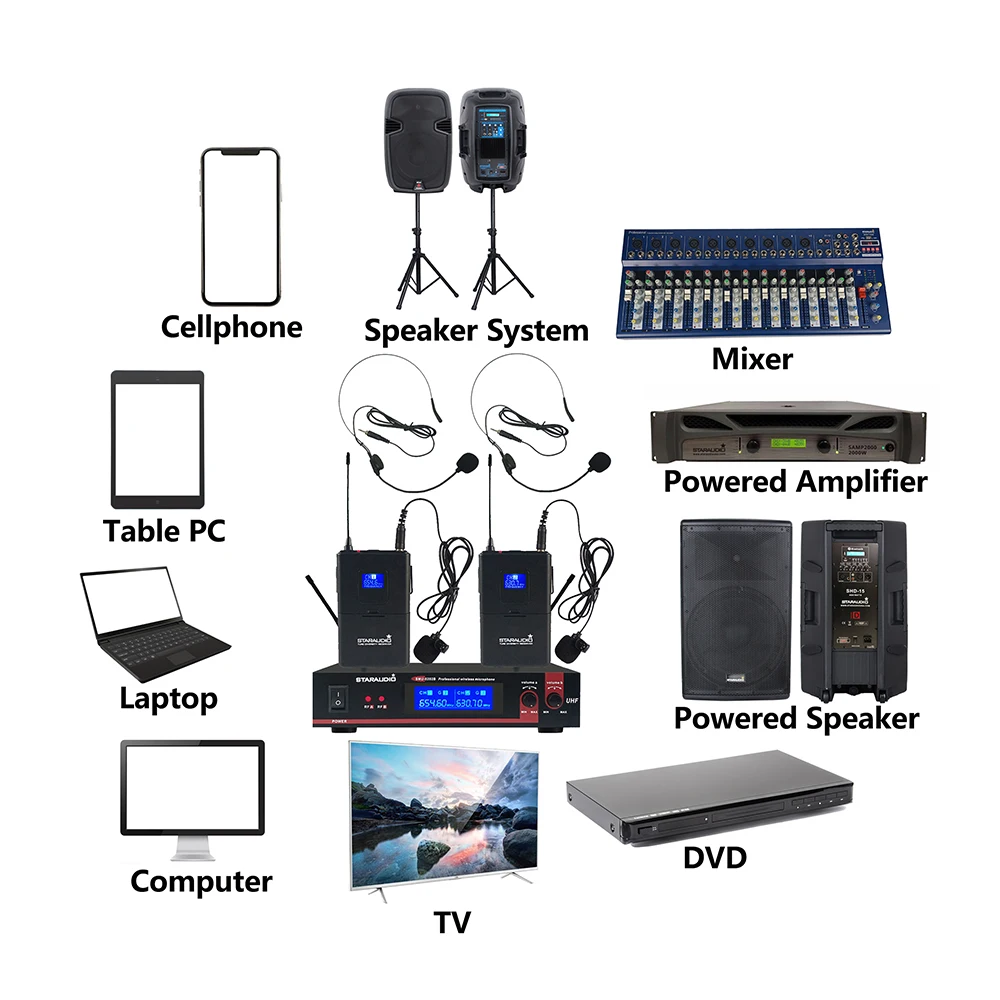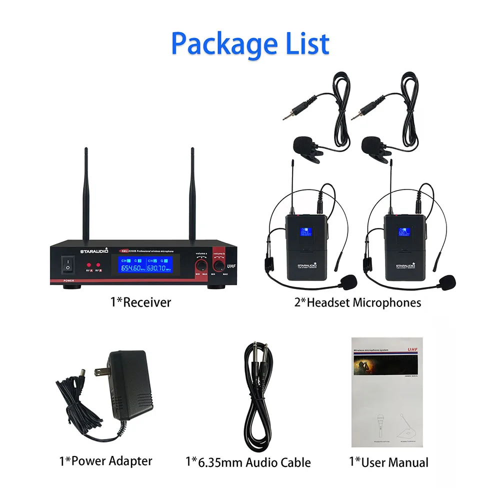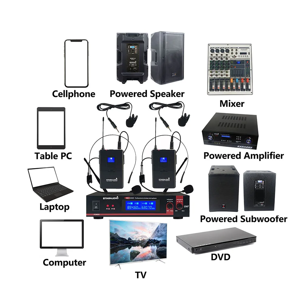 STARAUDIO двухканальная Беспроводная UHF 2CH гарнитура Lavalier Bodypack микрофон Система 2CH сценические вечерние KTV церковные ночные клубы бар Свадебные школьные микрофоны