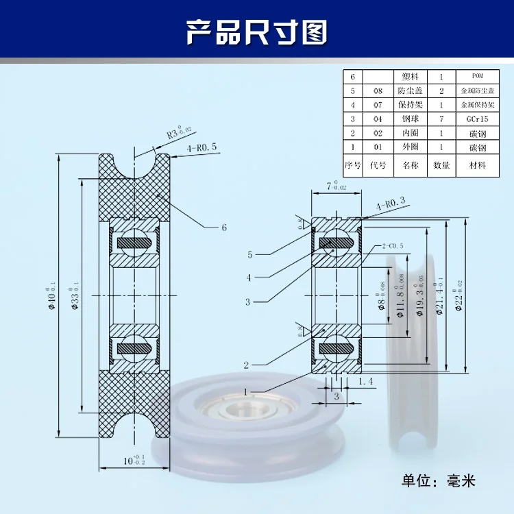 Delrin POM 8x40x10 мм U тип шаровой подшипник ролик 608ZZ delrin колеса