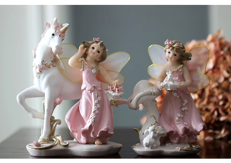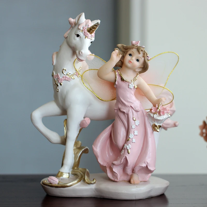 Волшебная фигурка Ангела из смолы в виде рога единорога, Волшебная лошадка в виде цветка, миниатюрное винтажное украшение для дома