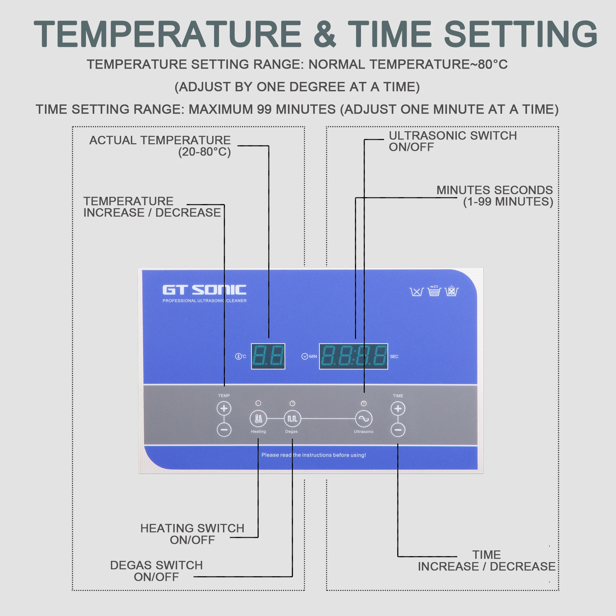 4. Установите время очистки ультразвукового очистителя и нормальную температуру, пожалуйста, нажмите кнопку запуска,