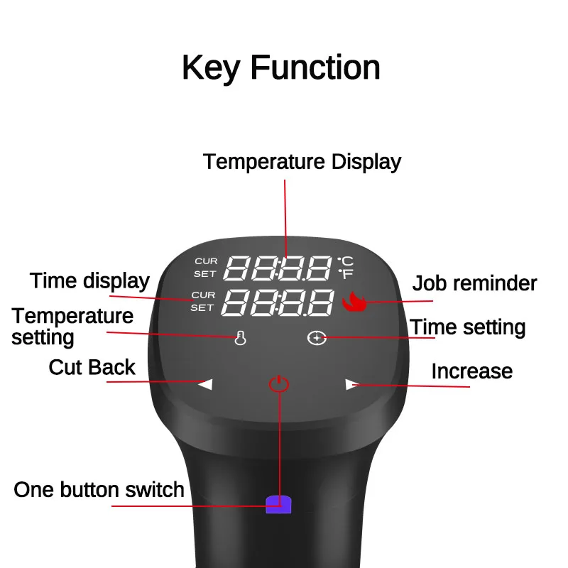 ✔Простота в использовании-Просто прикрепите плиту Sous Vide к кастрюле любого размера с помощью регулируемого зажима, а затем установите время и температуру, нажмите на значок на сенсорном экране, чтобы включить/выключить и подтвердить настройки. Простота в эксплуатации и в течение нескольких секунд.