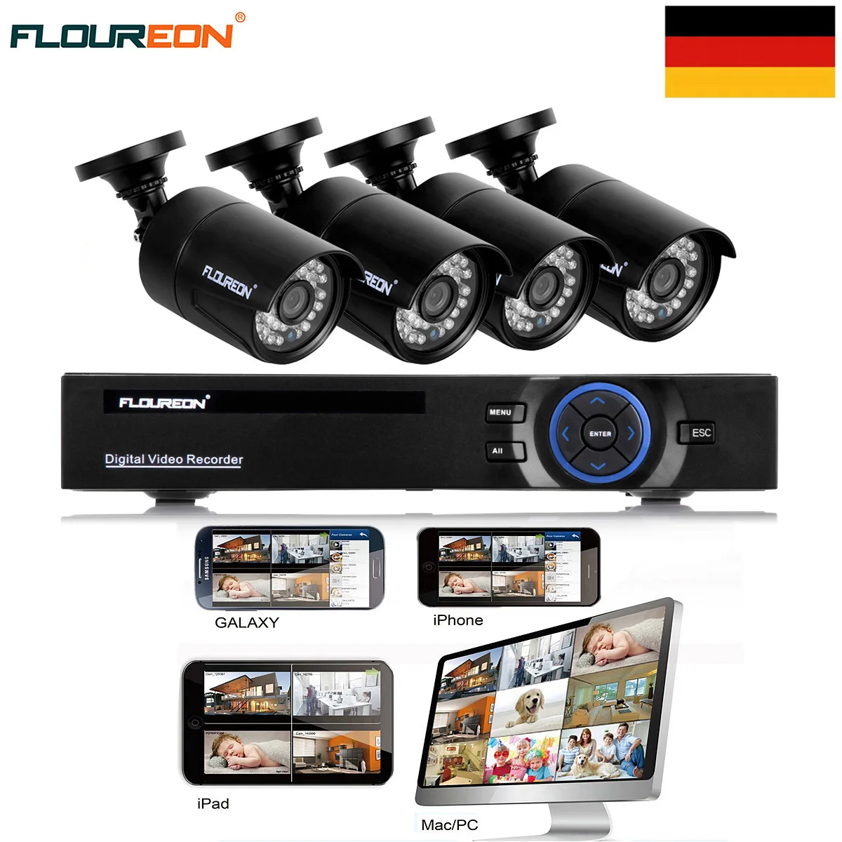 -Поддержка 8 каналов одновременного просмотра в реальном времени через ваш смартфон.