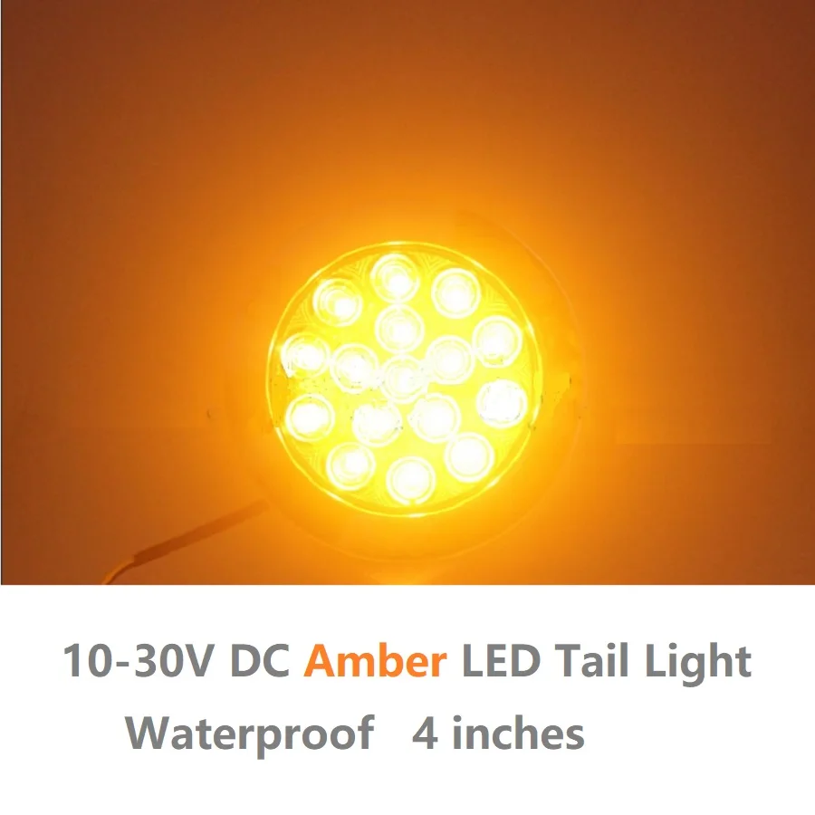 Янтарный круглый прицеп задние фонари, 4 дюйма, водонепроницаемый, серебряное кольцо, 12 В, 24 В постоянного тока