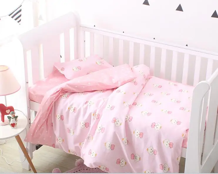 Комплект постельного белья для малышей из 3 предметов, 100% хлопок, Комплект постельного белья для новорожденных с рисунком из мультфильма, пододеяльник, наволочка, простыня, комплект детской кровати