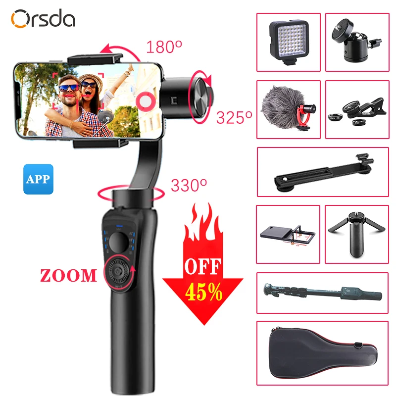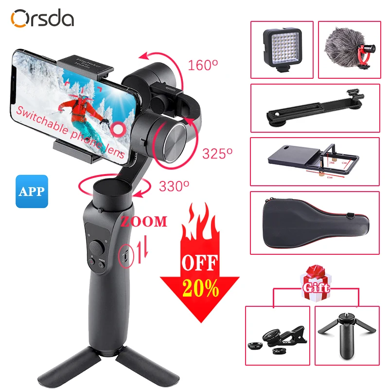 Orsda с 3 Осями для смартфона Gimbal Ручной Стабилизатор для камеры из фокус аэрожелобное стабилизатор для мобильного телефона камеры мобильного телефона для телефона Gopro Iphone Xr