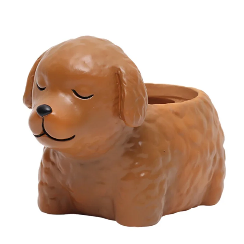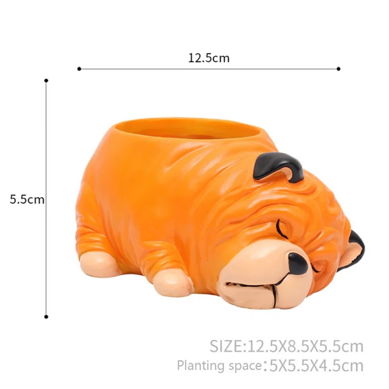 2. Дизайн спящего щенка имеет теплое и милое ощущение, и он заставляет людей любить его. Этот цветочный горшок имеет водную розетку.