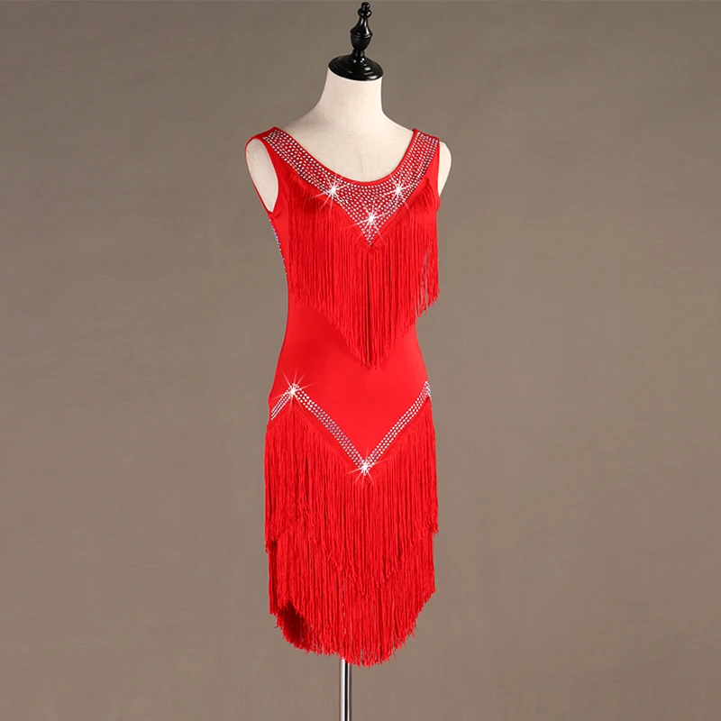CACARE Latin Dance Dress Women Fringe Dress Customize D0561 Salsa Dance Wear Latin Dance Costumes with Tassels Rhinestones